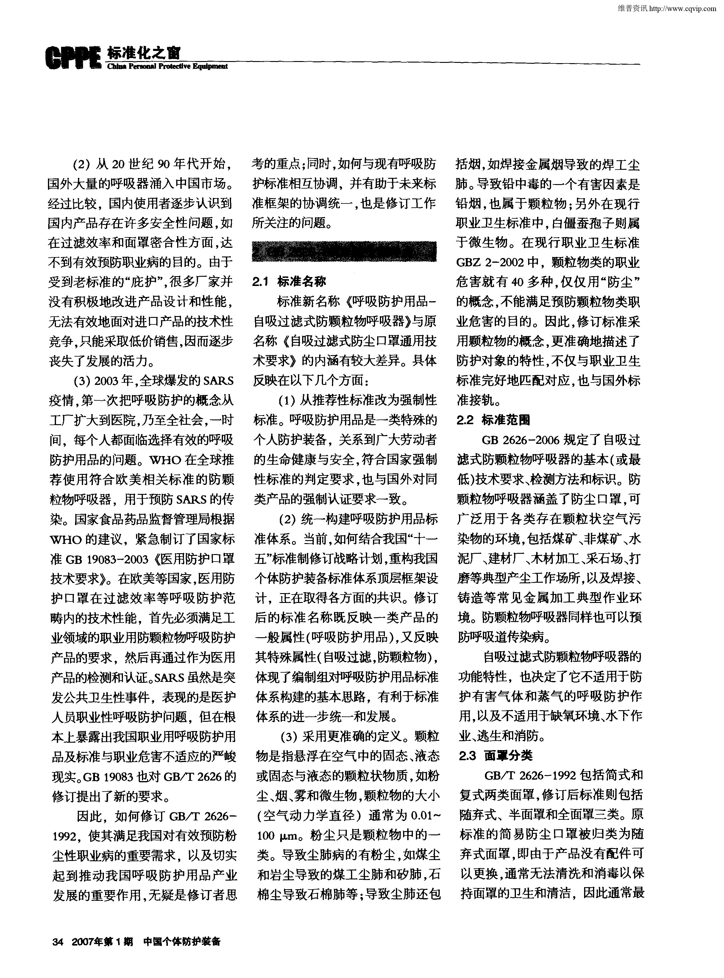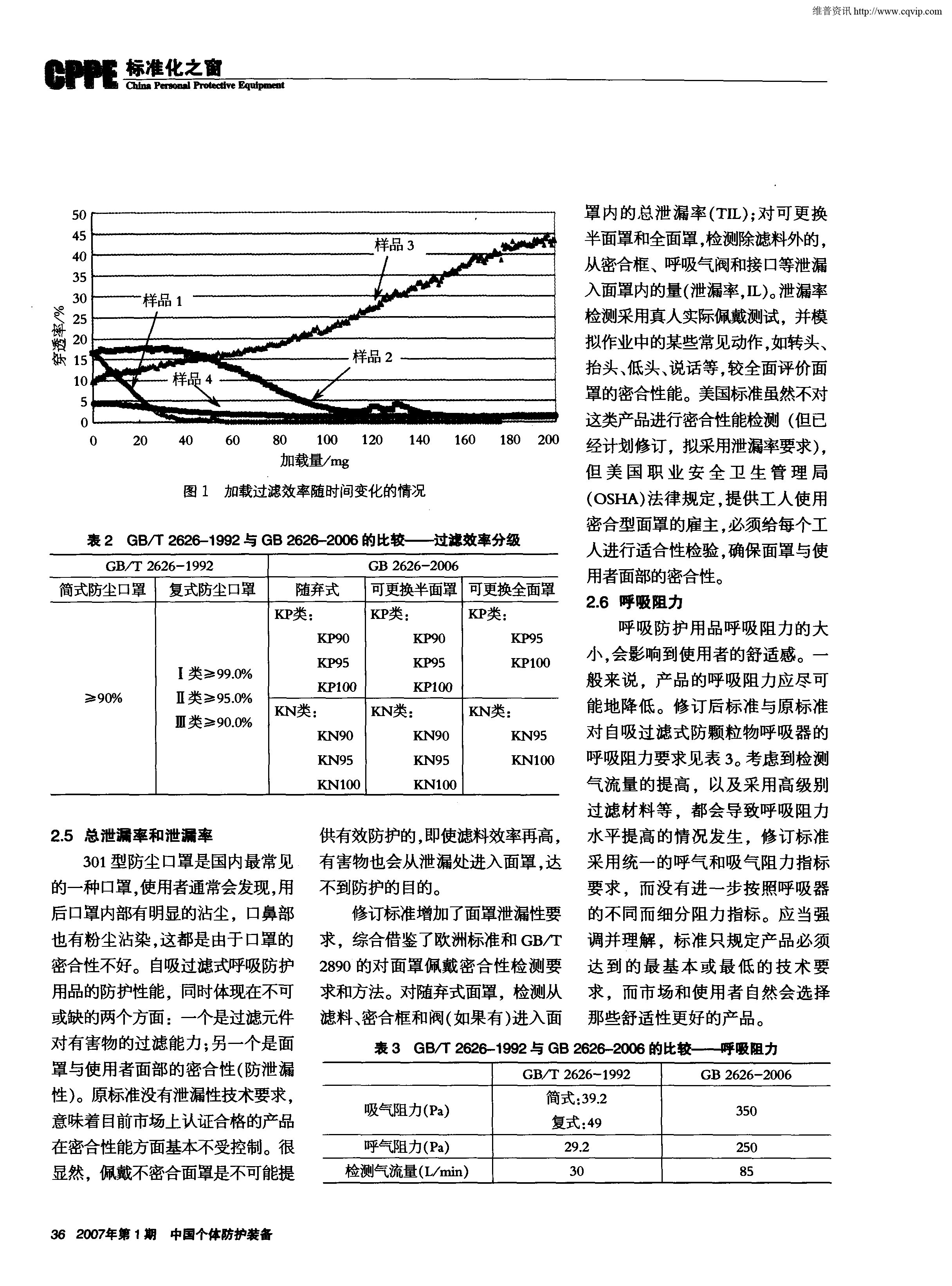表1GB/T2626-1992與GB2626-2006的比較—過(guò)濾效率