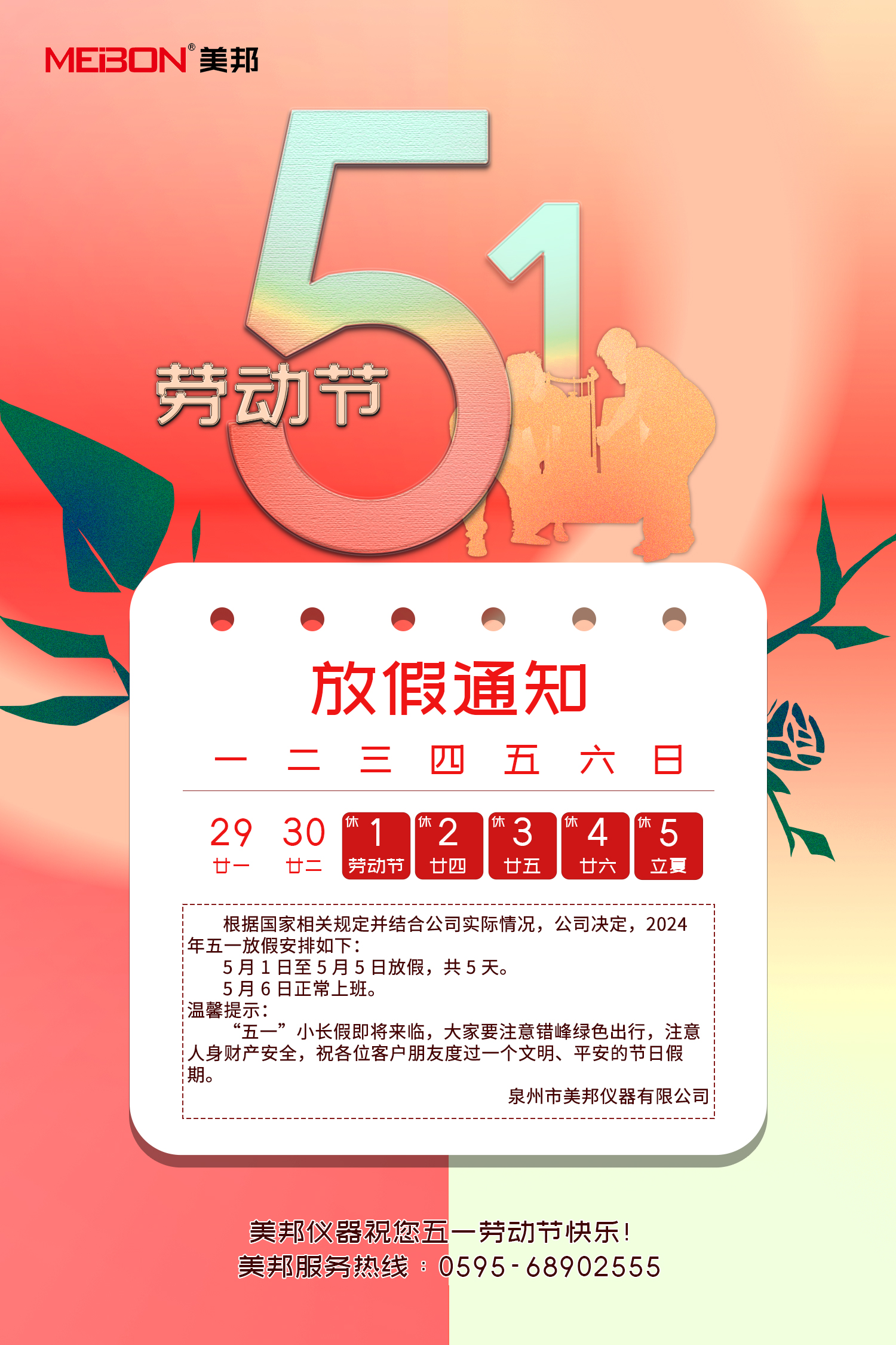 美邦儀器2024年五一國際勞動(dòng)節(jié)放假通知