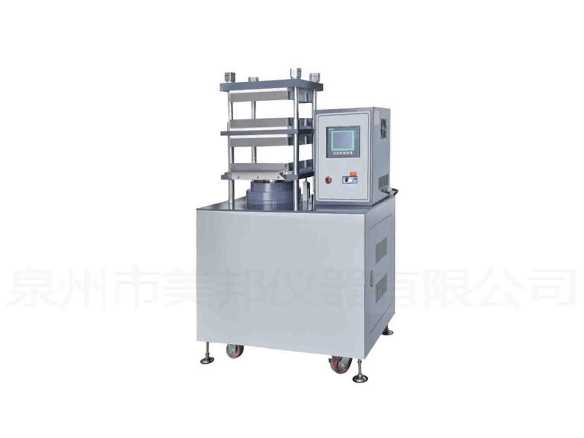 將原料放于鑄模內(nèi),夾于本機(jī)電熱平板間,加以壓力及溫度,使原料成型,以供試驗(yàn),做為工廠大量生產(chǎn)配料之依據(jù)。
